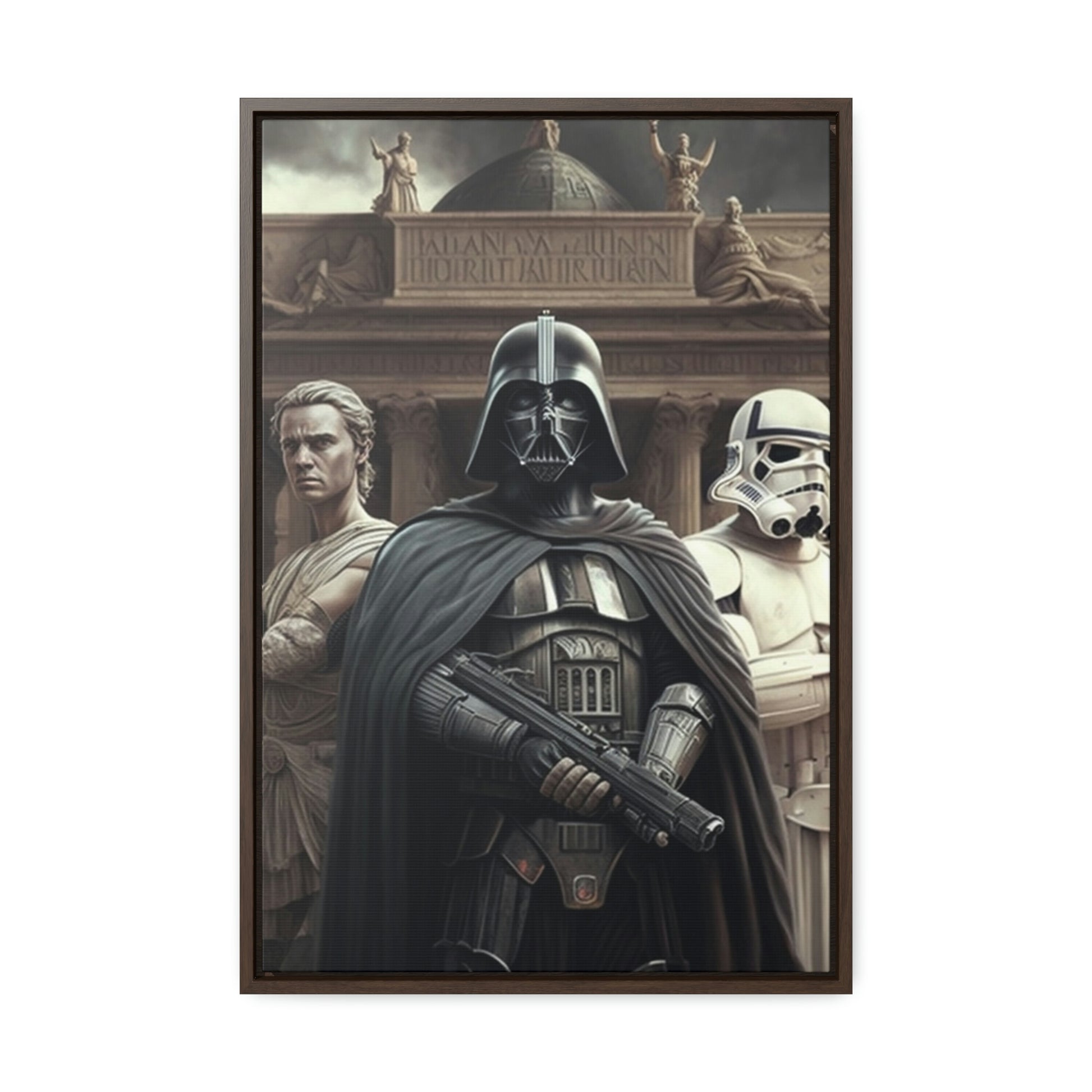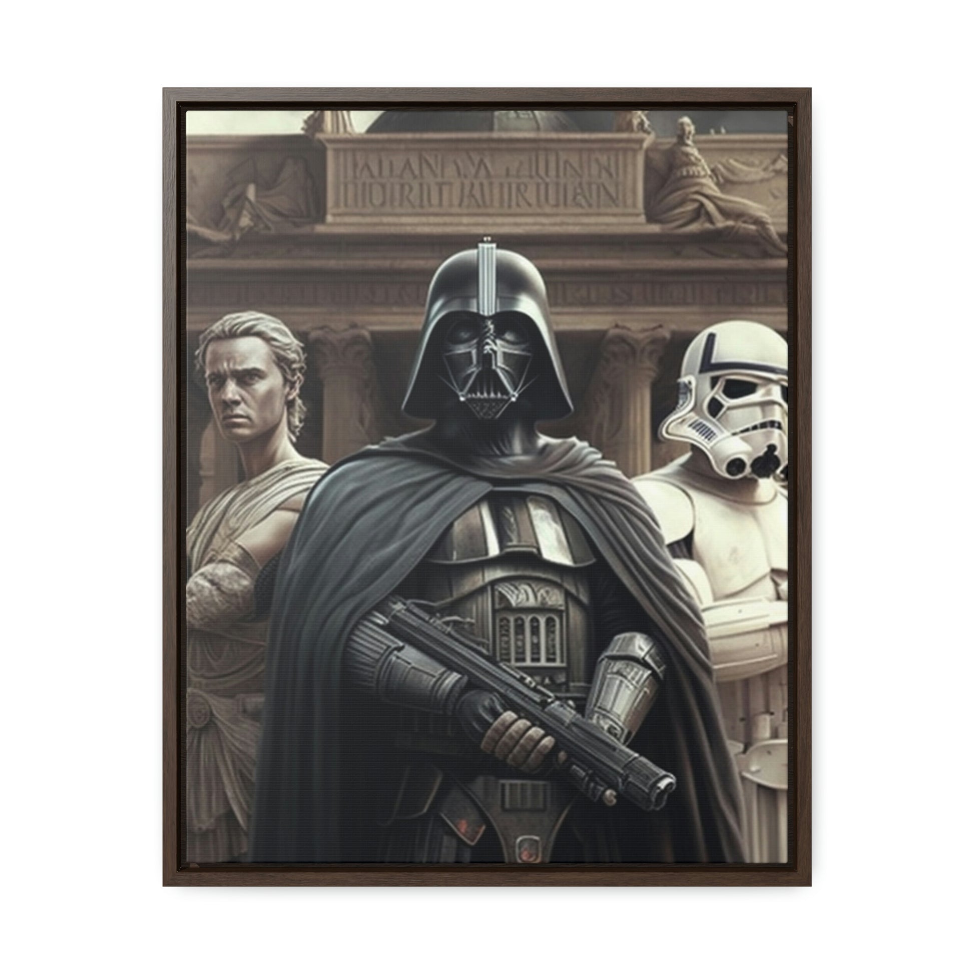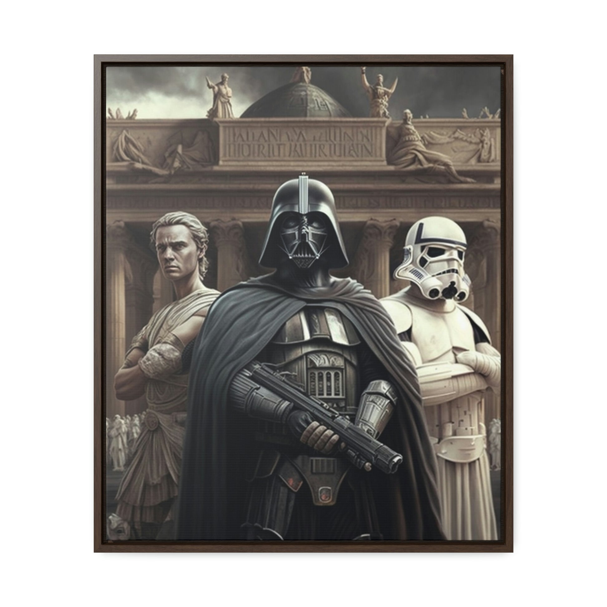 Step into a world of creativity and imagination with our stunning artwork featuring Jedi, Darth Vader, and a Stormtrooper standing in front of an ancient Roman temple. This unique painting showcases a fusion of galactic and ancient worlds in a visually striking and captivating way. The vintage style adds warmth and character to your home decor, making it perfect as a statement piece. Whether you're a fan of Star Wars or history, our Artwork Fusion Painting is the perfect addition to your living space.