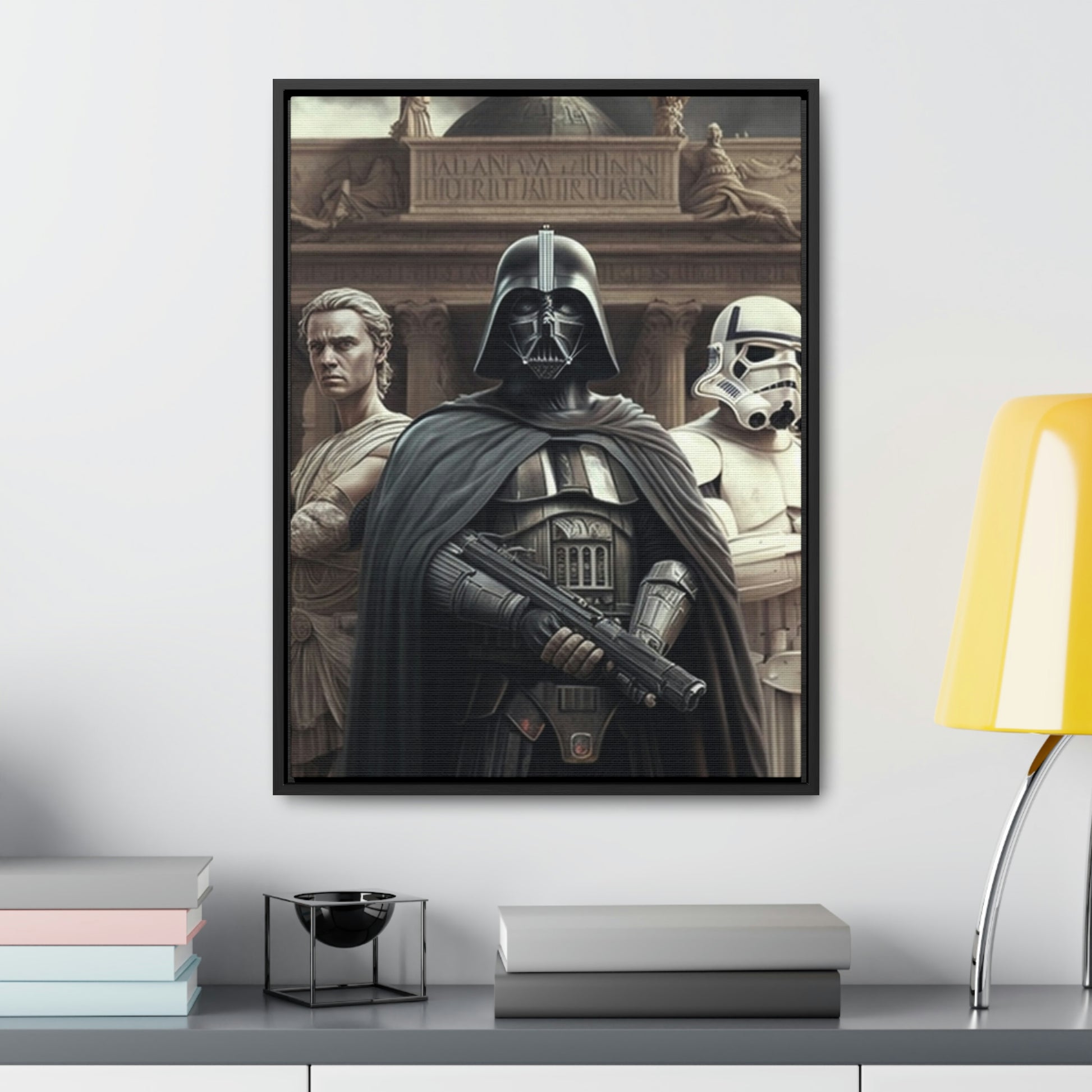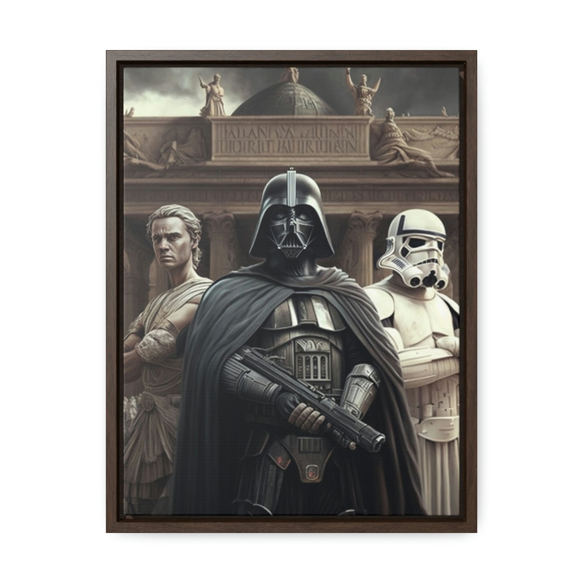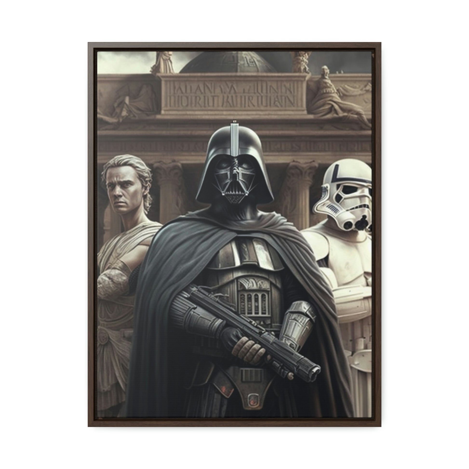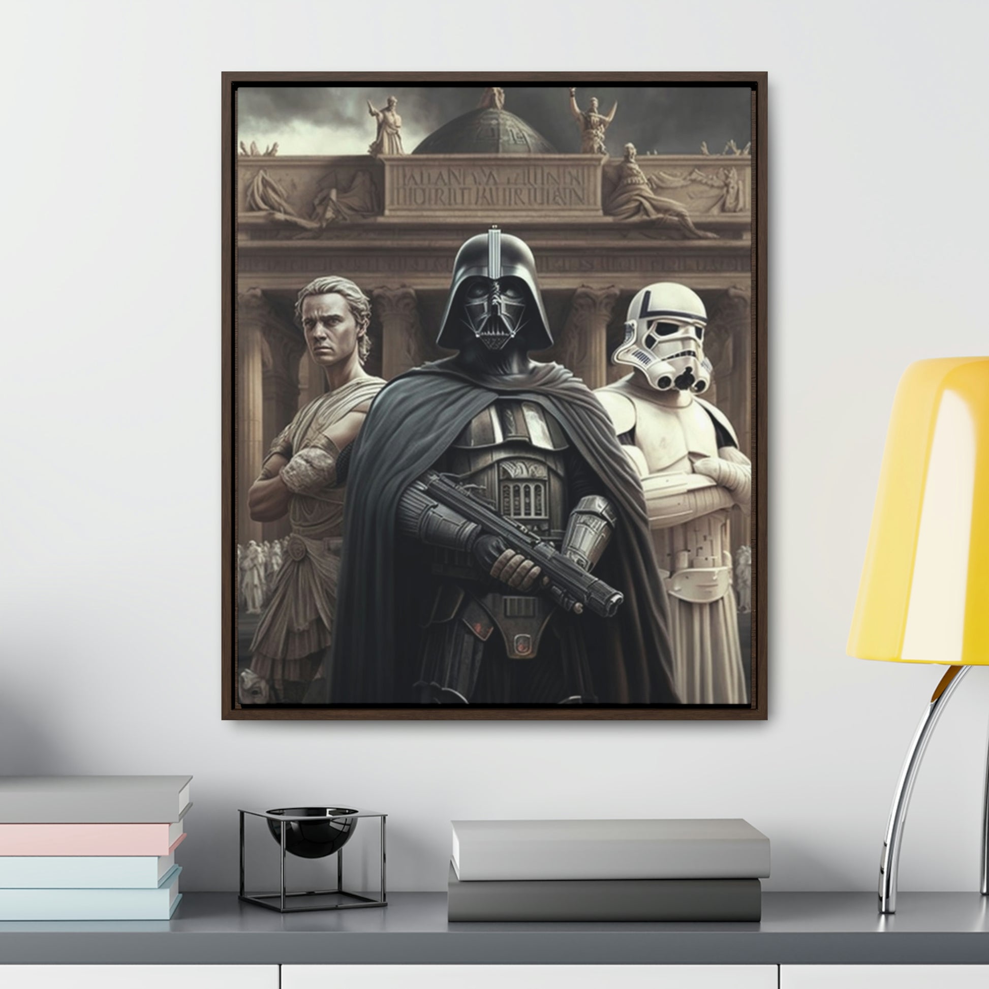 Step into a world of creativity and imagination with our stunning artwork featuring Jedi, Darth Vader, and a Stormtrooper standing in front of an ancient Roman temple. This unique painting showcases a fusion of galactic and ancient worlds in a visually striking and captivating way. The vintage style adds warmth and character to your home decor, making it perfect as a statement piece. Whether you're a fan of Star Wars or history, our Artwork Fusion Painting is the perfect addition to your living space.