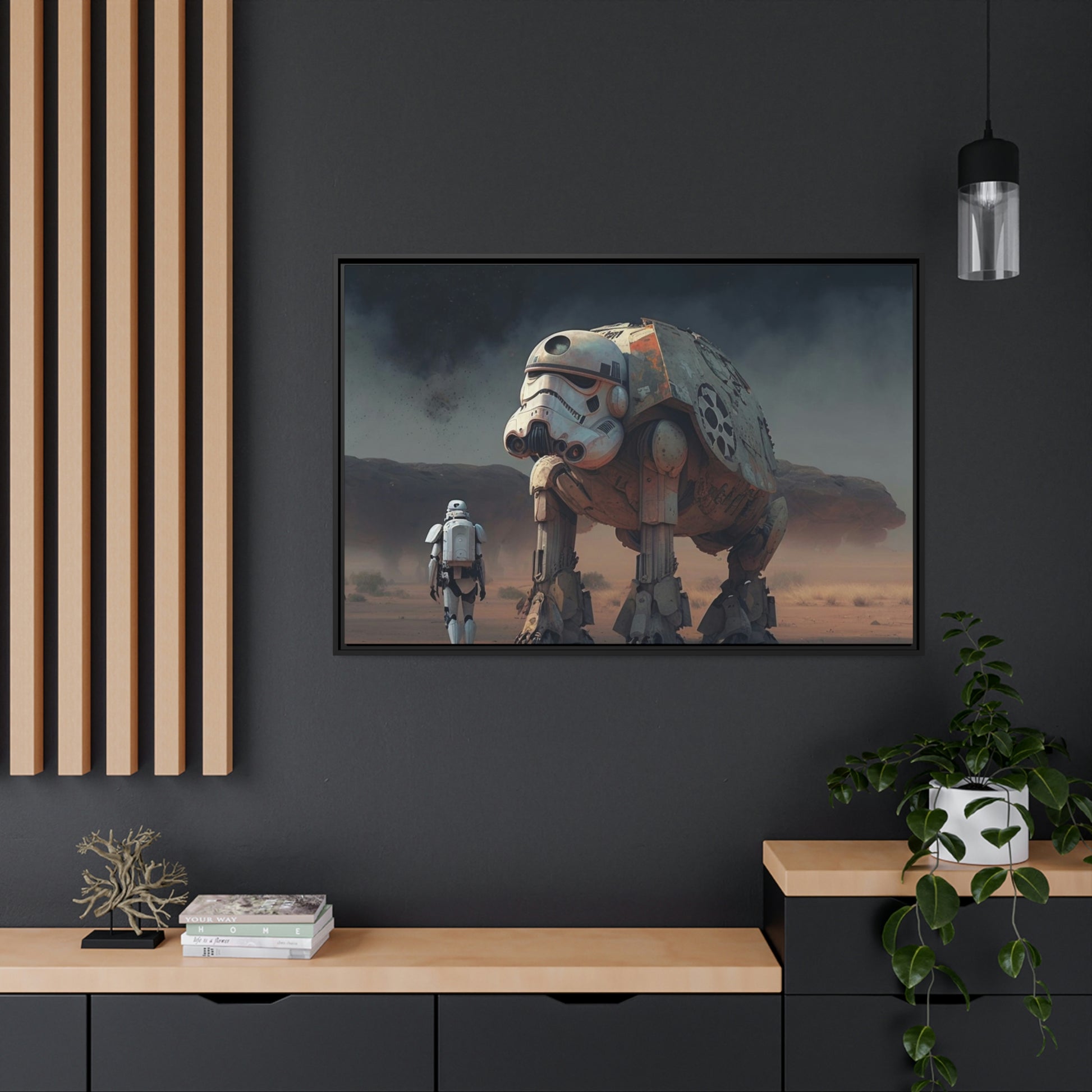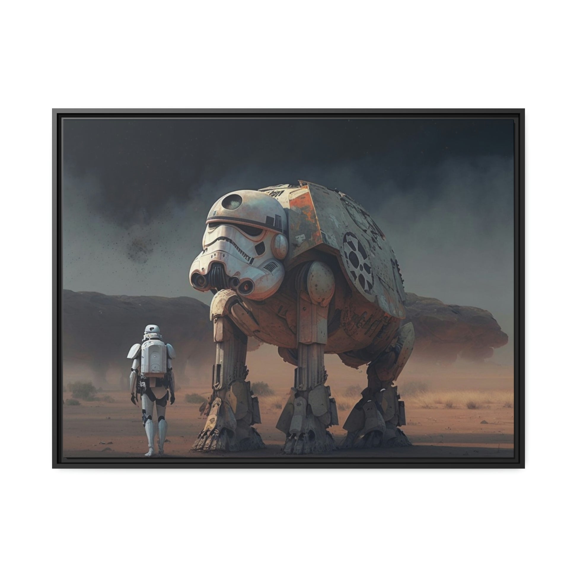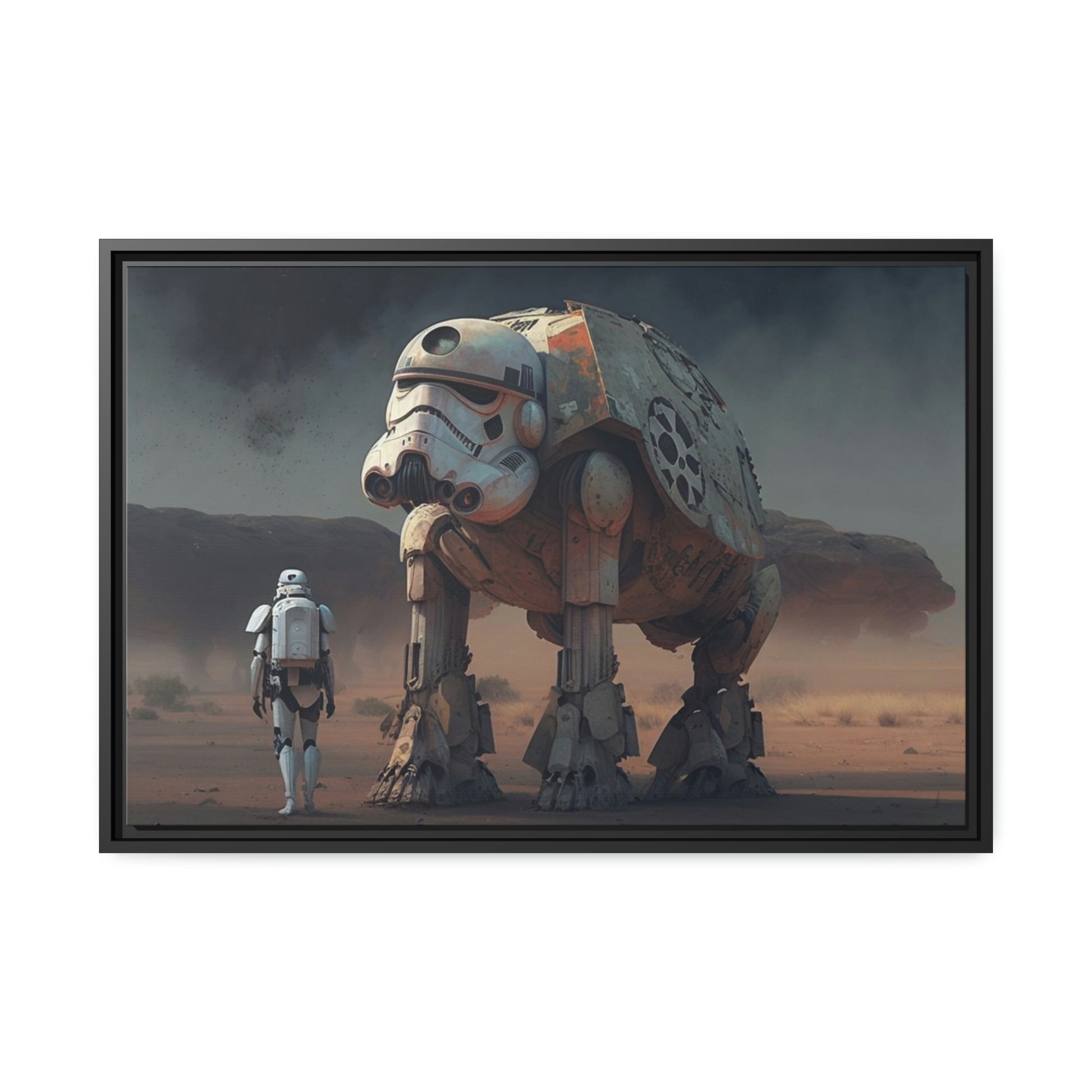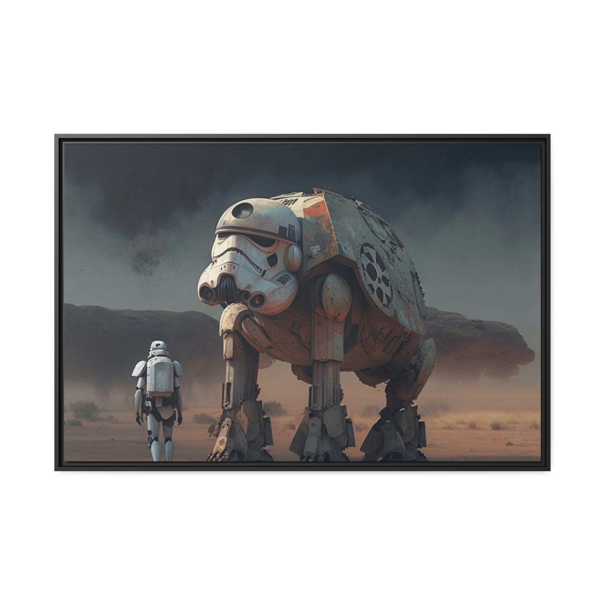 This abstract and realism painting featuring The All Terrain Armored Transport is unique and wild depiction of what is one of the most feared weapons' in the Star Wars Galaxy. This unique piece captures the intricate details of this iconic vehicle, while also incorporating abstract elements to create a visually striking and captivating painting. The vintage style adds warmth and character to your home decor, making it perfect as a statement piece. Whether you're a fan of Star Wars or art, our Abstract-Realism Painting is the perfect addition to your living space.