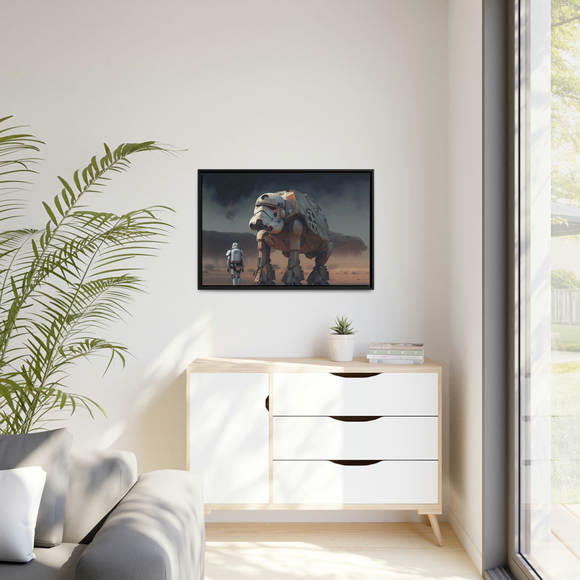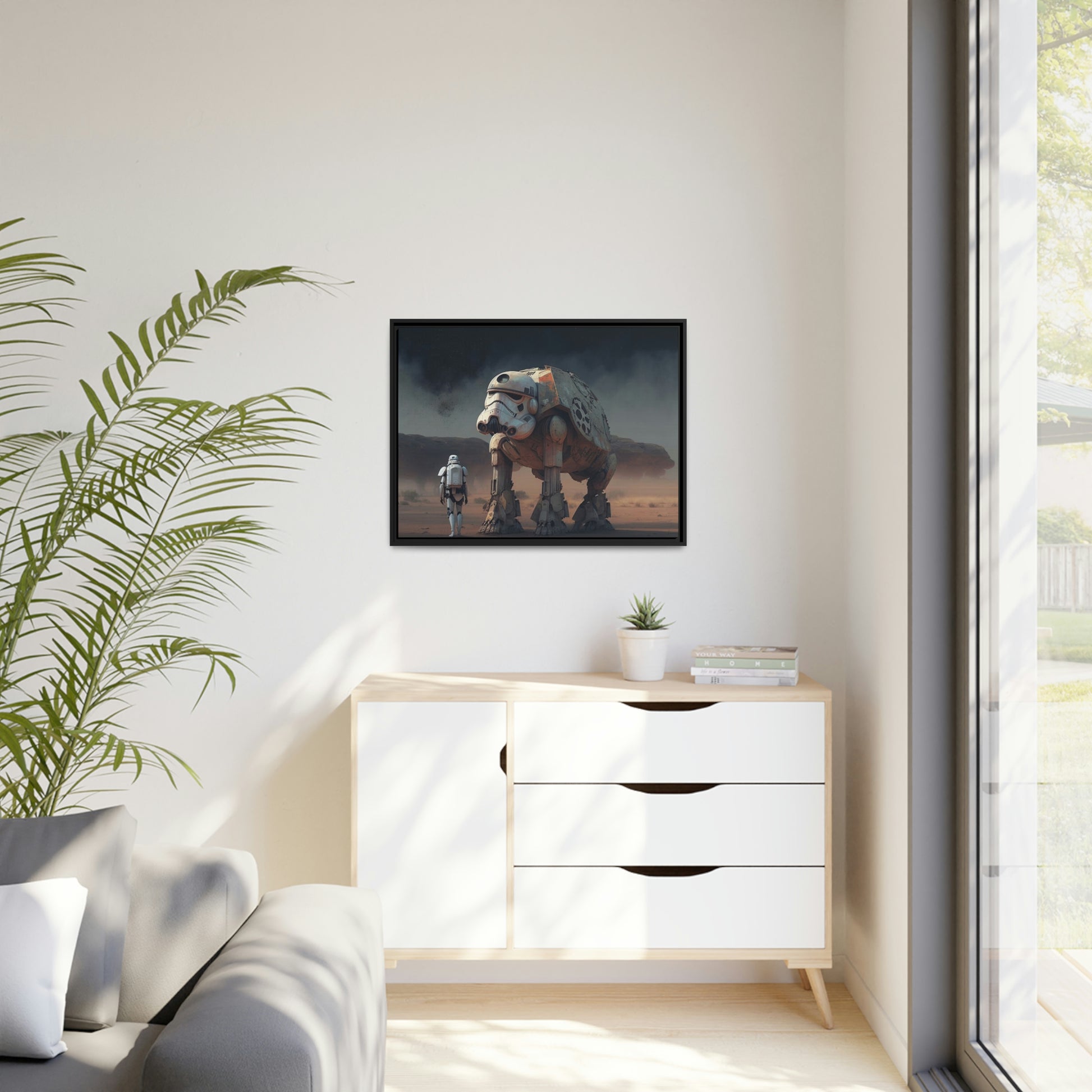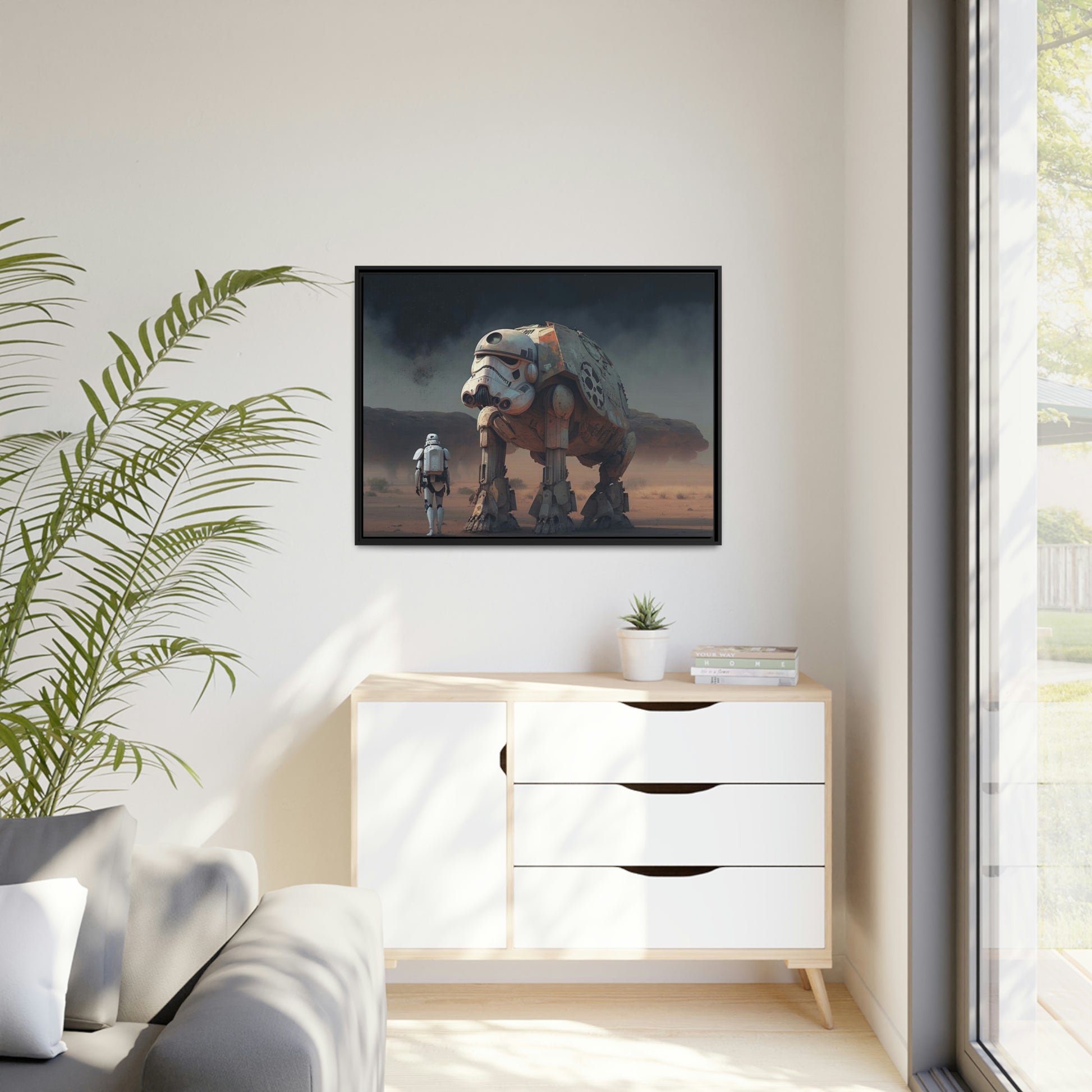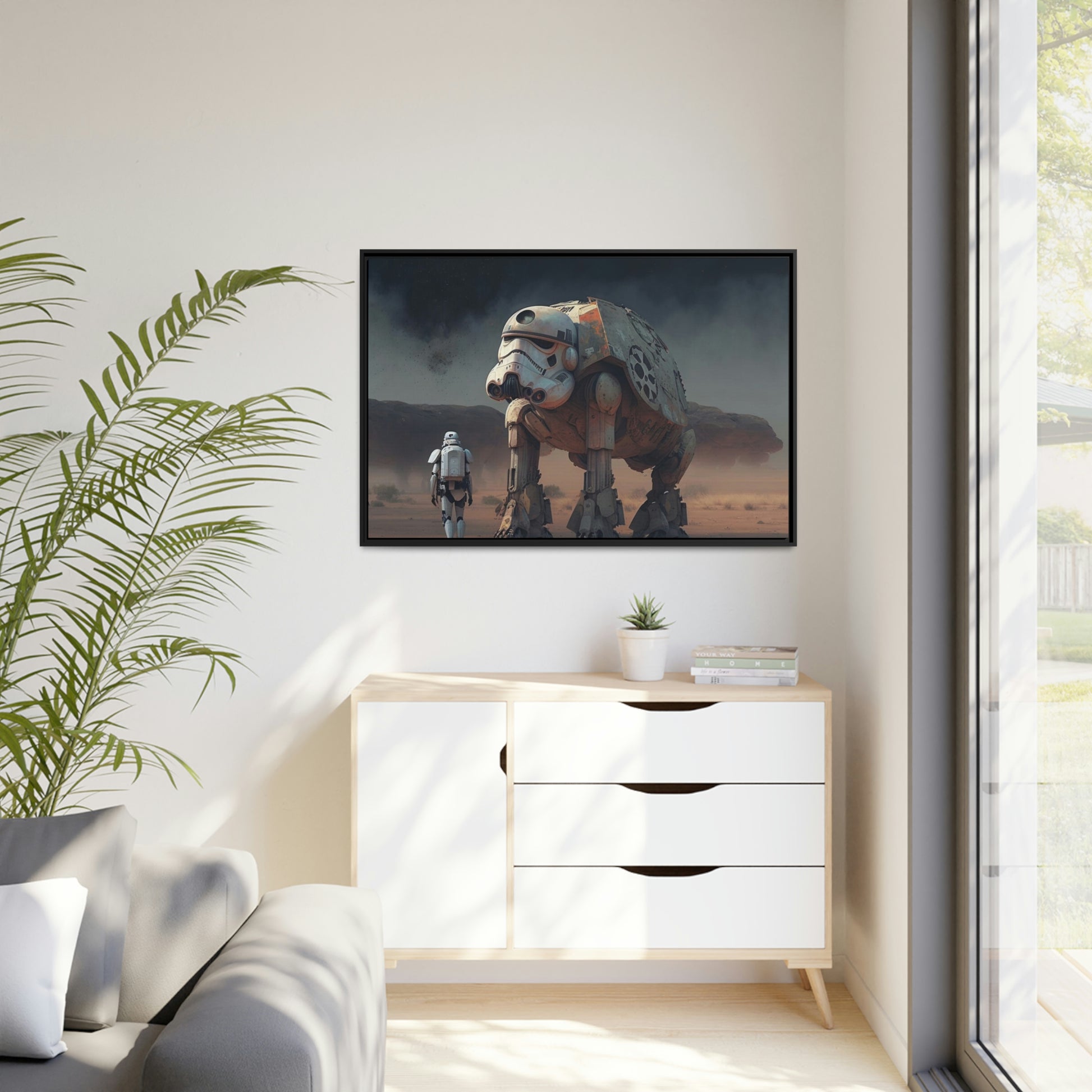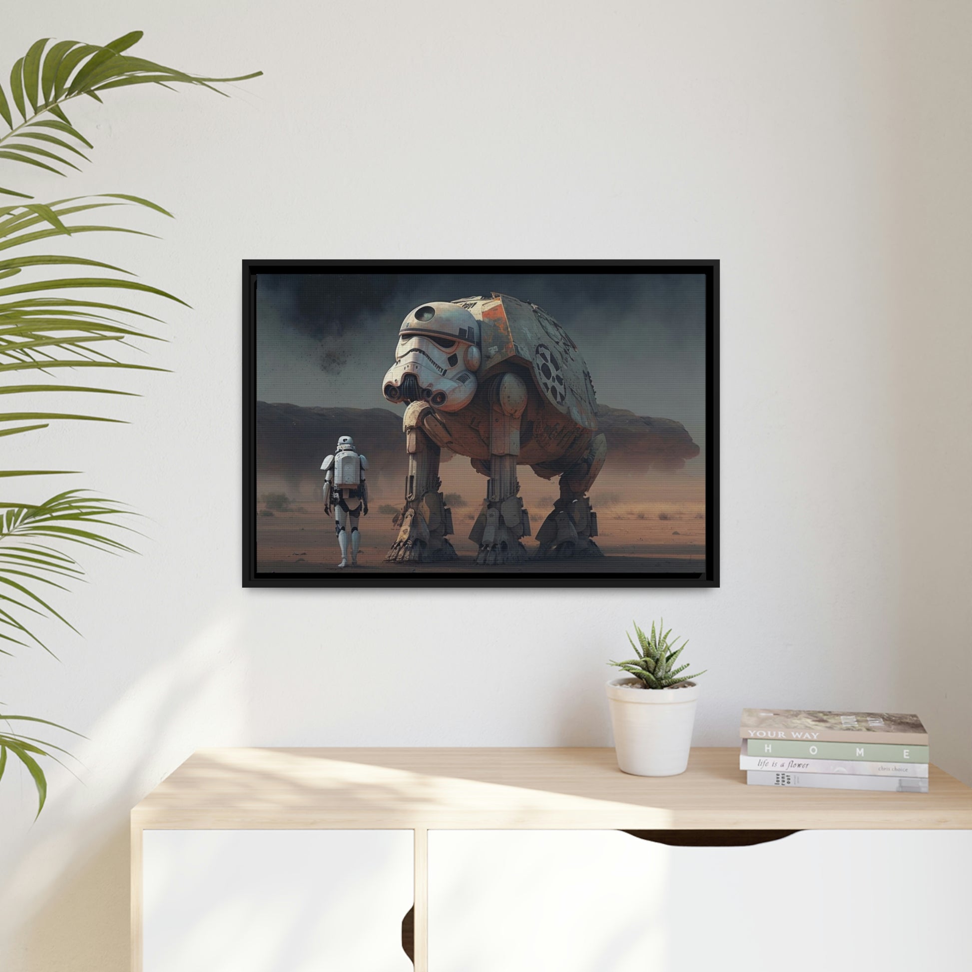 This abstract and realism painting featuring The All Terrain Armored Transport is unique and wild depiction of what is one of the most feared weapons' in the Star Wars Galaxy. This unique piece captures the intricate details of this iconic vehicle, while also incorporating abstract elements to create a visually striking and captivating painting. The vintage style adds warmth and character to your home decor, making it perfect as a statement piece. Whether you're a fan of Star Wars or art, our Abstract-Realism Painting is the perfect addition to your living space.