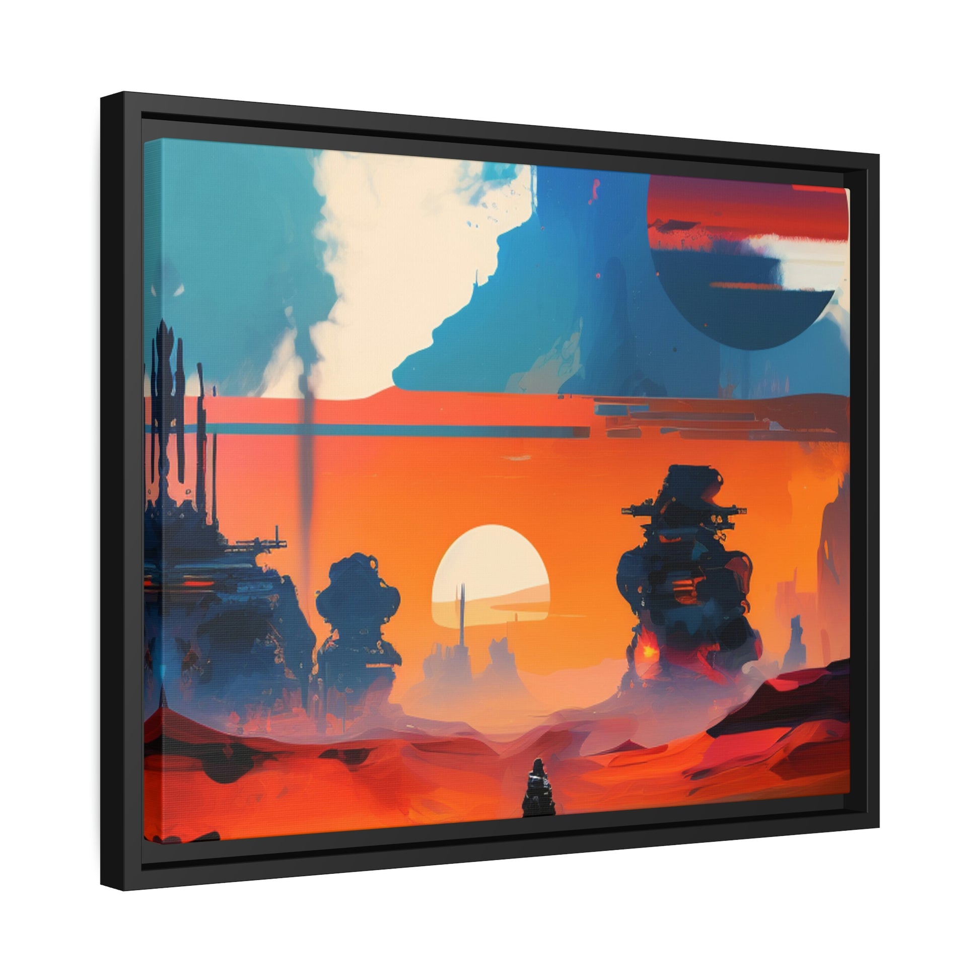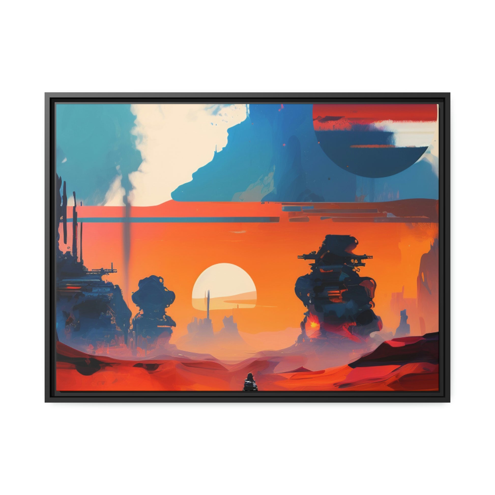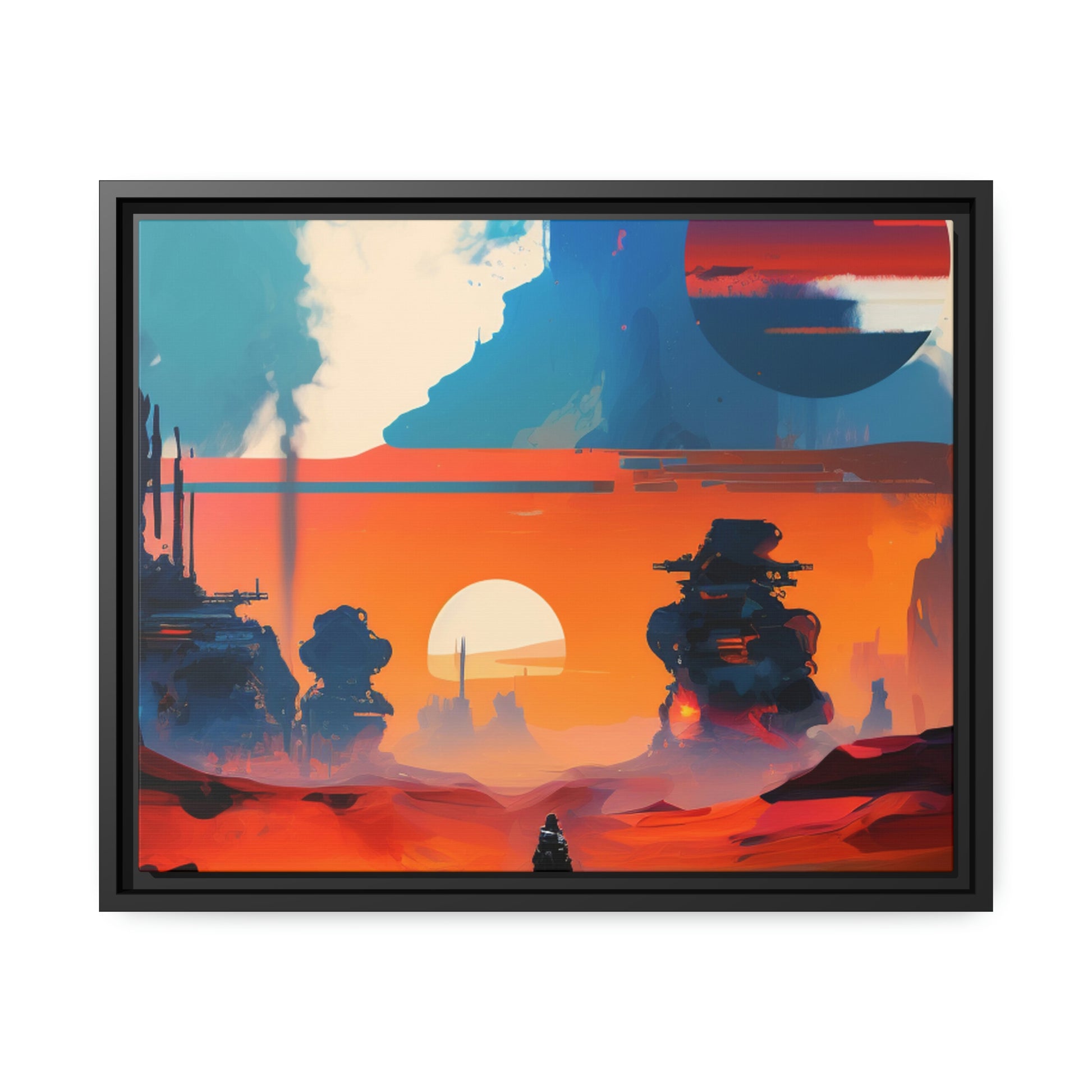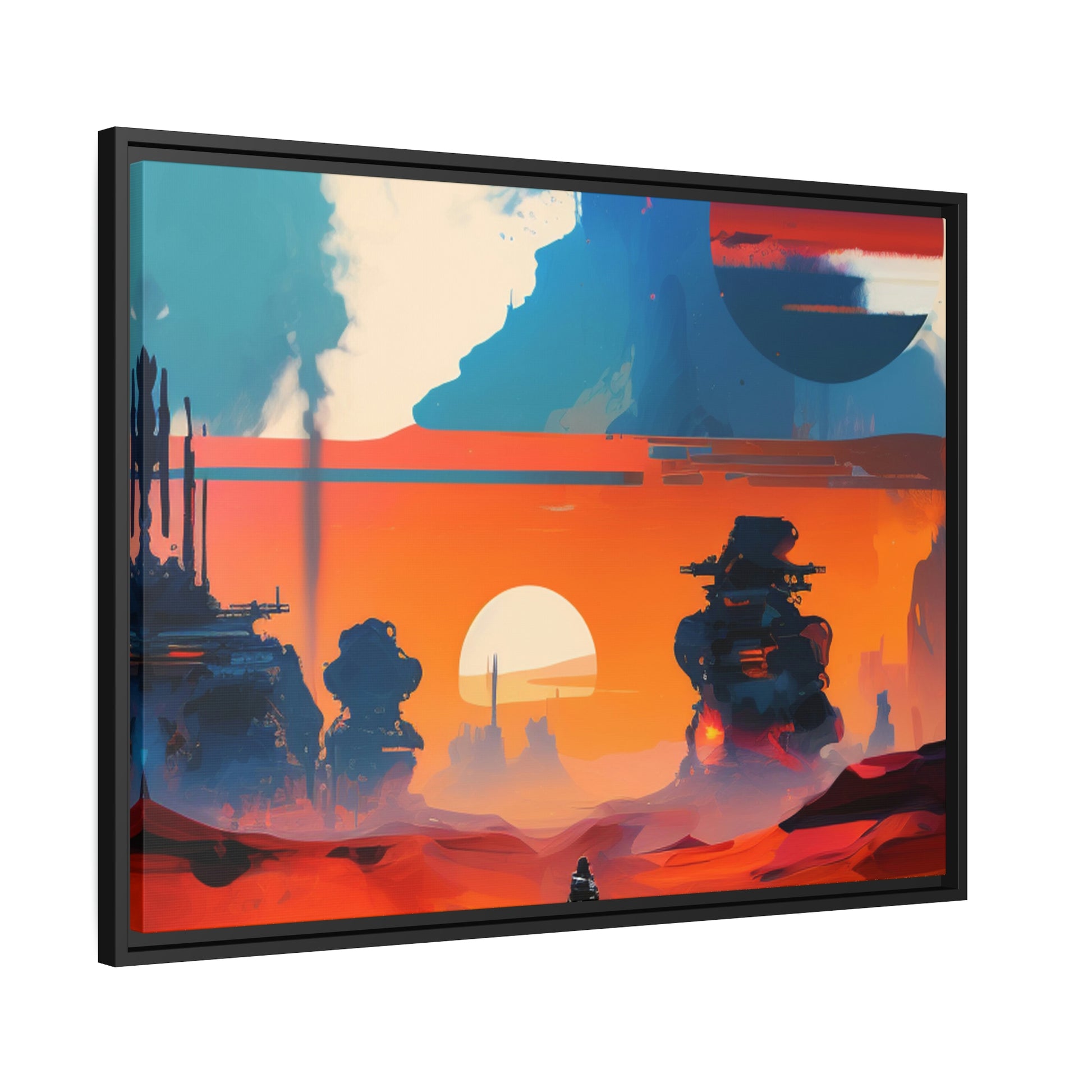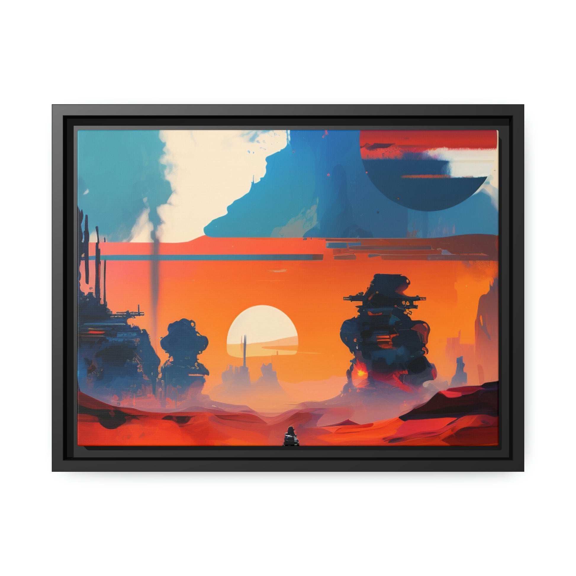 Experience the fusion of Tatooine sunset and the Star Wars universe with our stunning artwork featuring an abstract landscape inspired by the style of Mark Rothko. This unique painting showcases a mix of organic shapes and bold colors, with the added touch of Star Wars characters, creating a visually striking and captivating piece. The abstract style and vibrant color adds warmth and character to your home decor, making it perfect as a statement piece. Whether you're a fan of Star Wars or contemporary art, This sublime landscape is the perfect addition to your living space.
