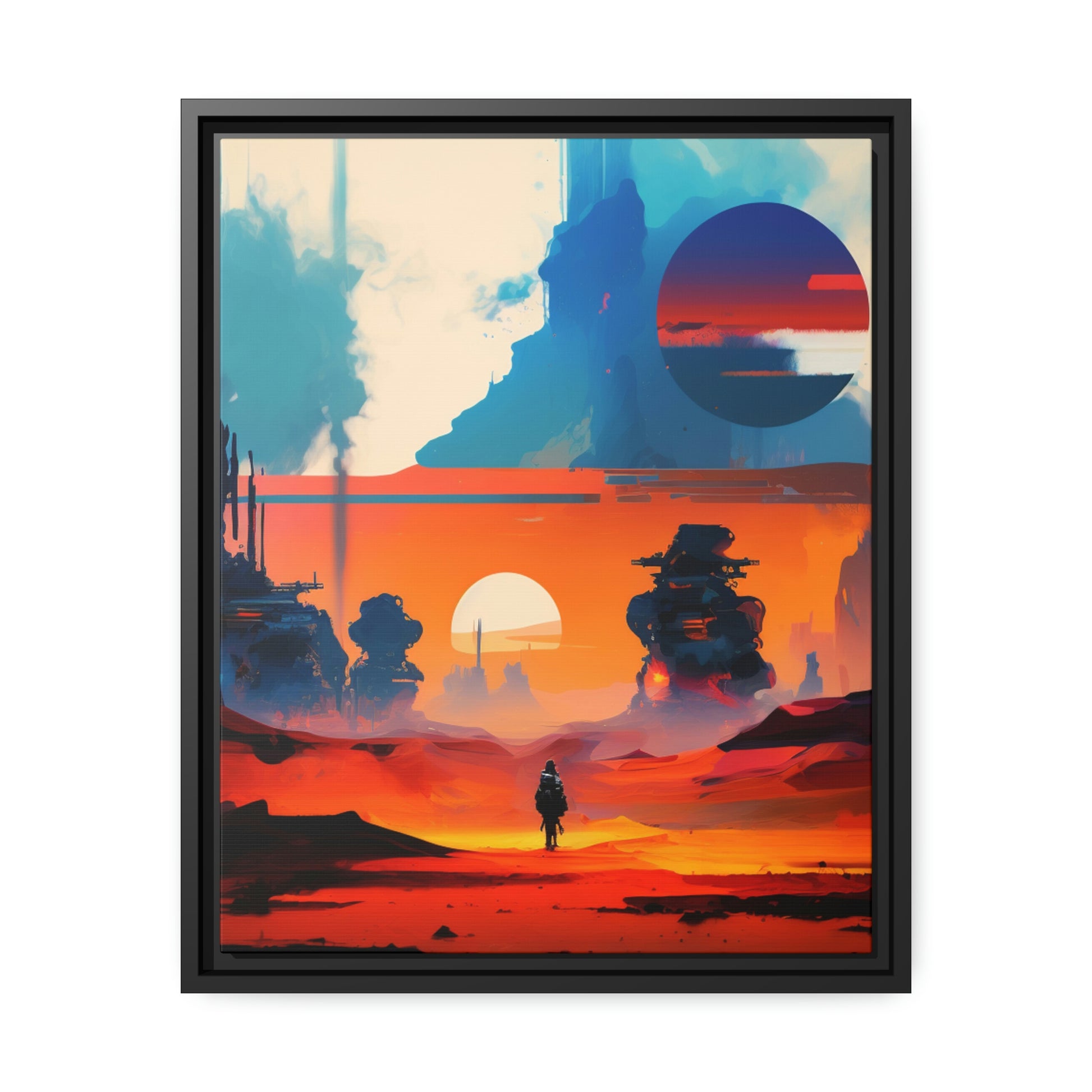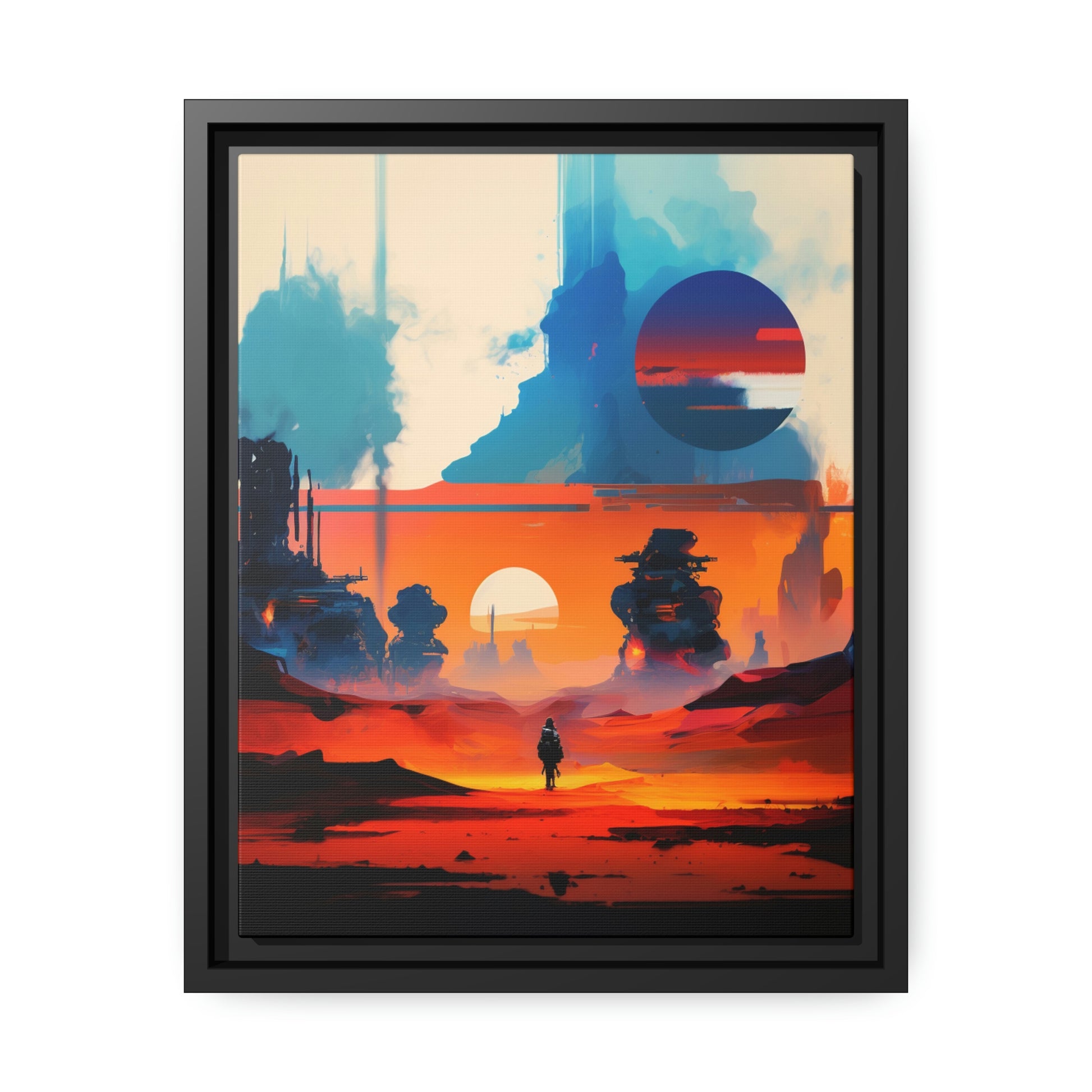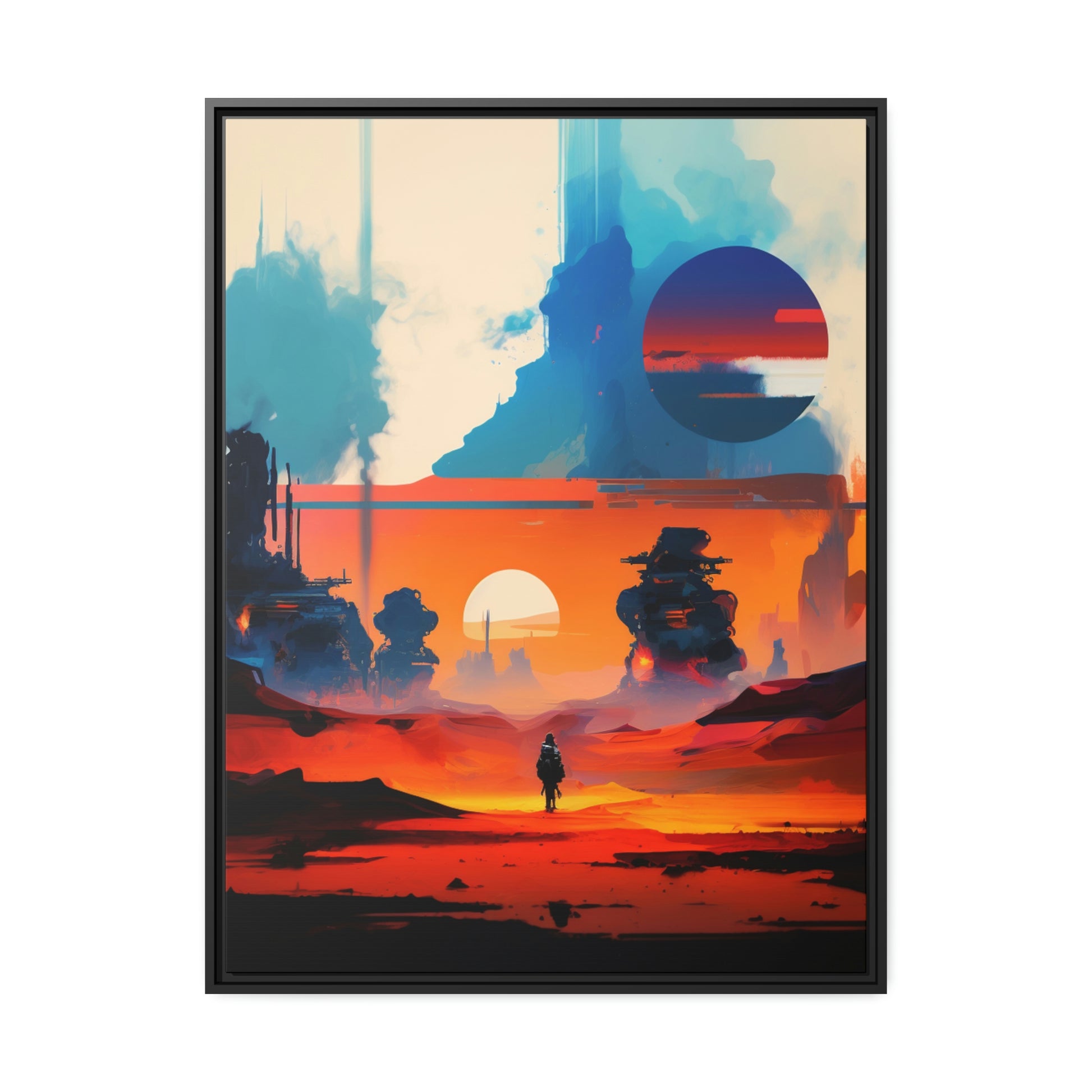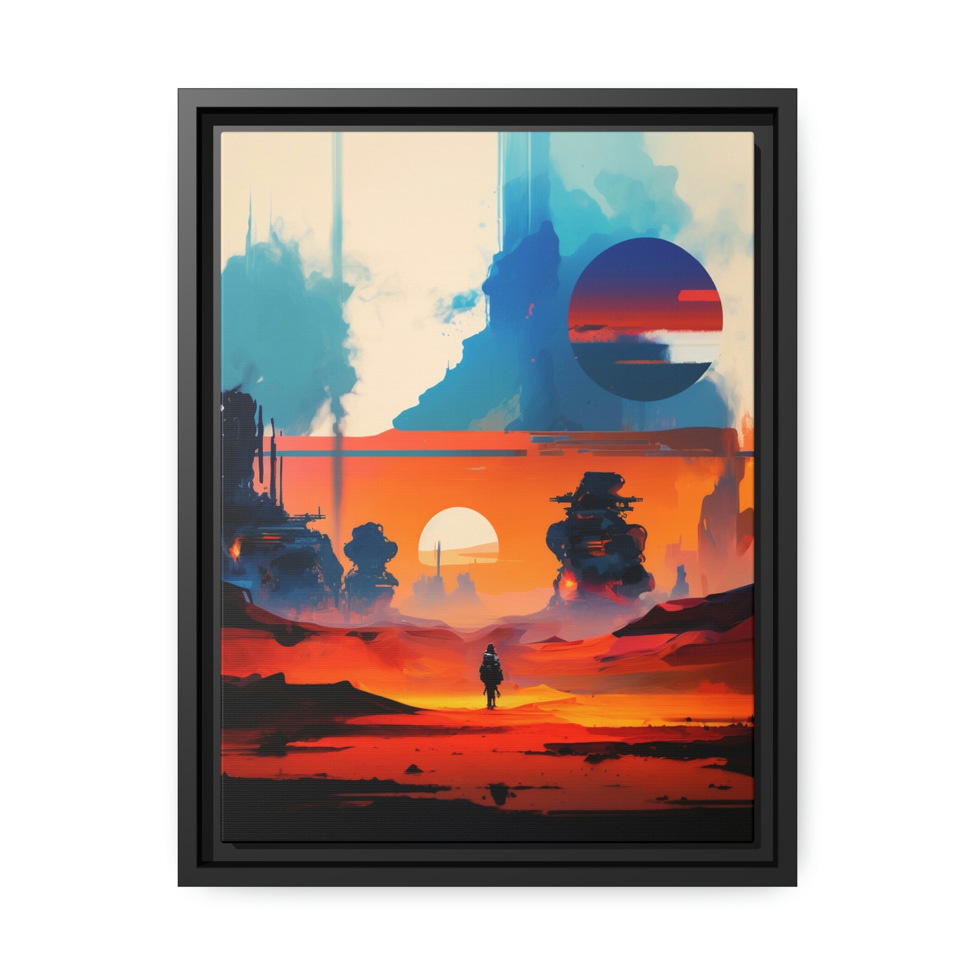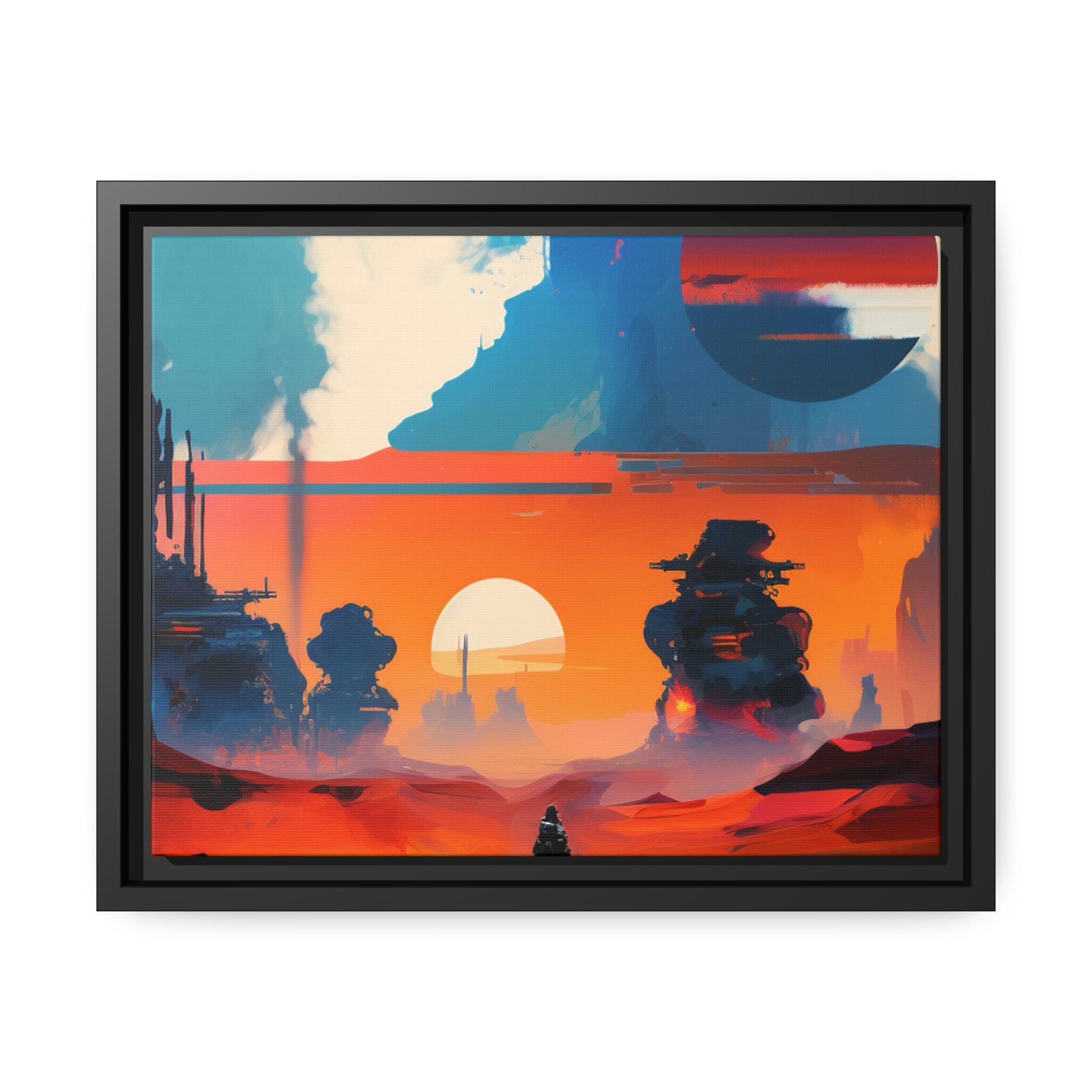 Experience the fusion of Tatooine sunset and the Star Wars universe with our stunning artwork featuring an abstract landscape inspired by the style of Mark Rothko. This unique painting showcases a mix of organic shapes and bold colors, with the added touch of Star Wars characters, creating a visually striking and captivating piece. The abstract style and vibrant color adds warmth and character to your home decor, making it perfect as a statement piece. Whether you're a fan of Star Wars or contemporary art, This sublime landscape is the perfect addition to your living space.