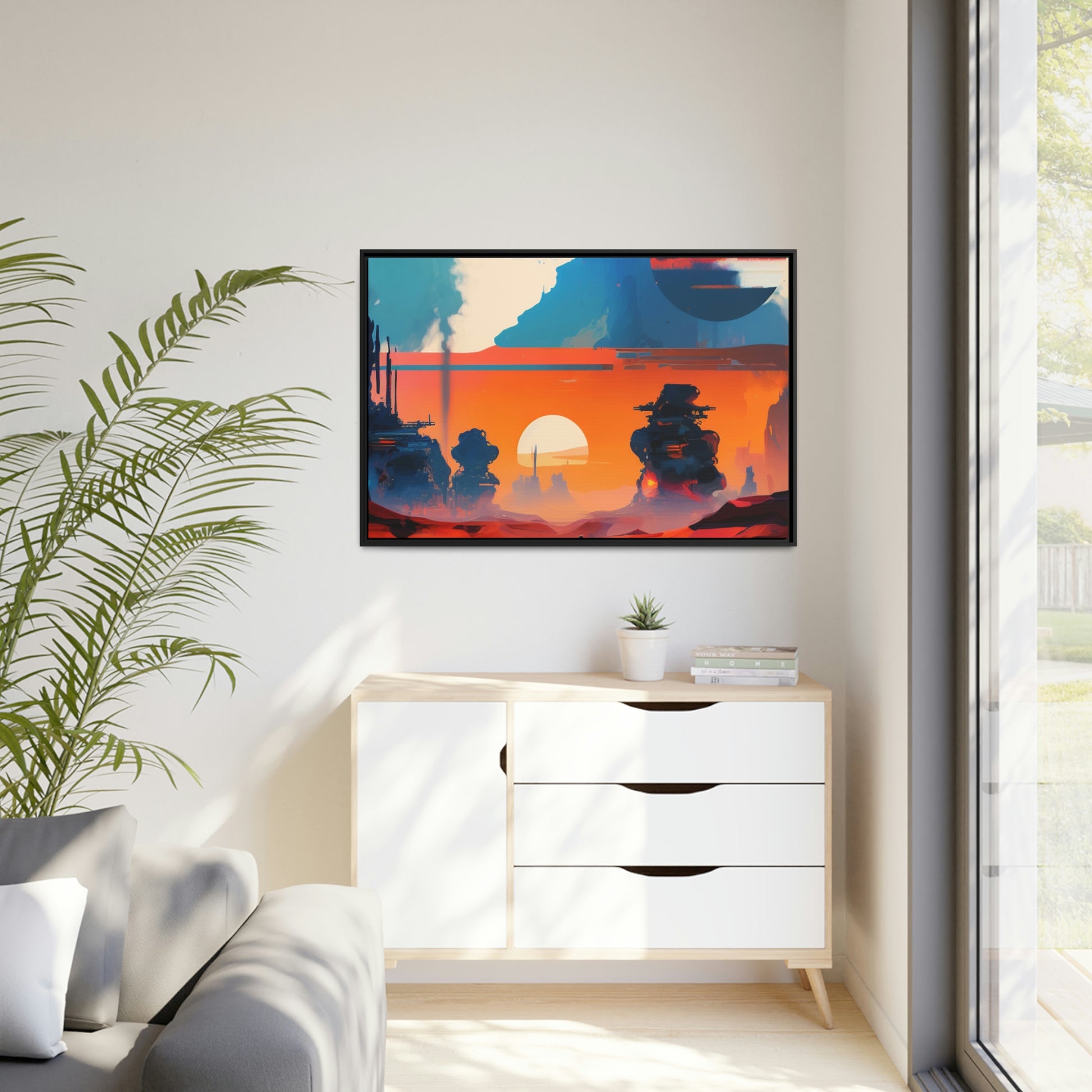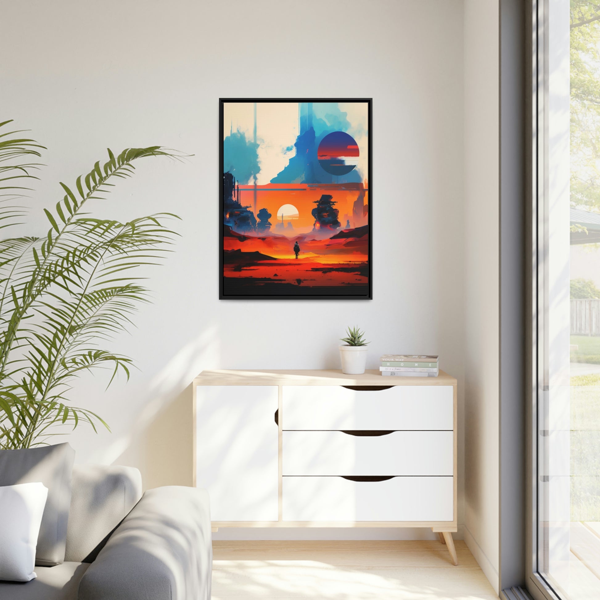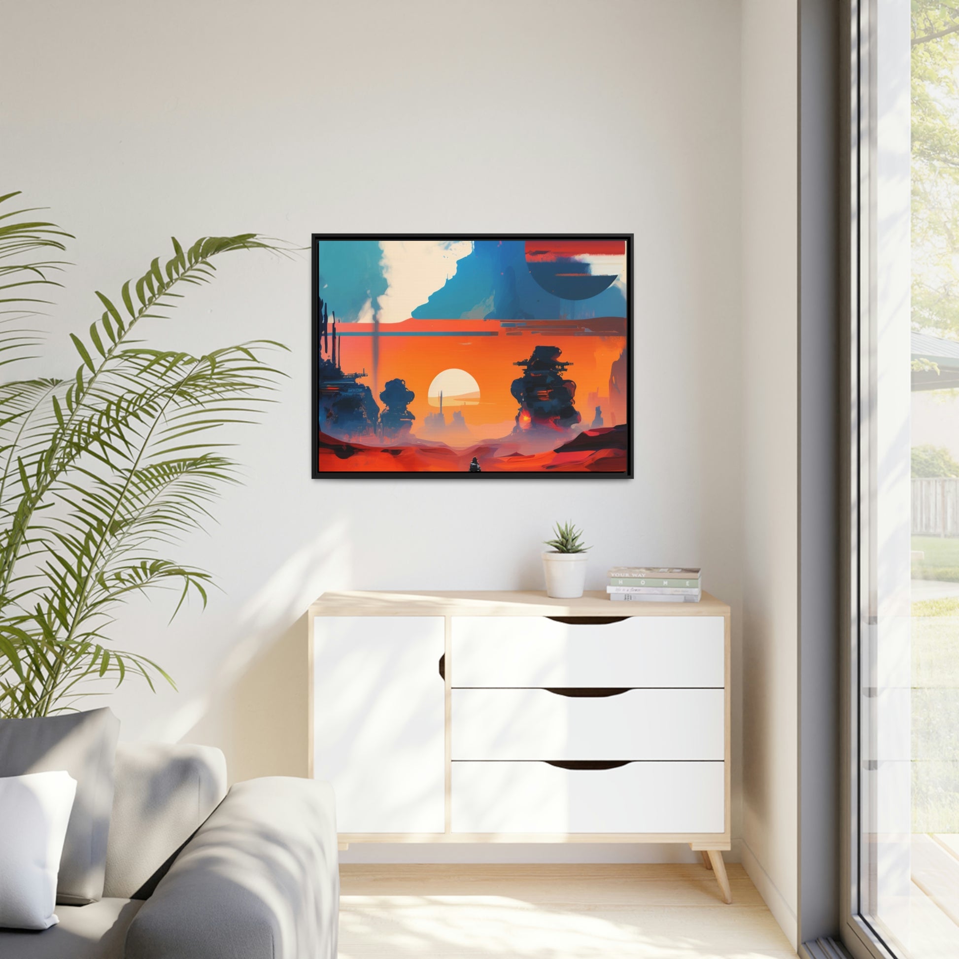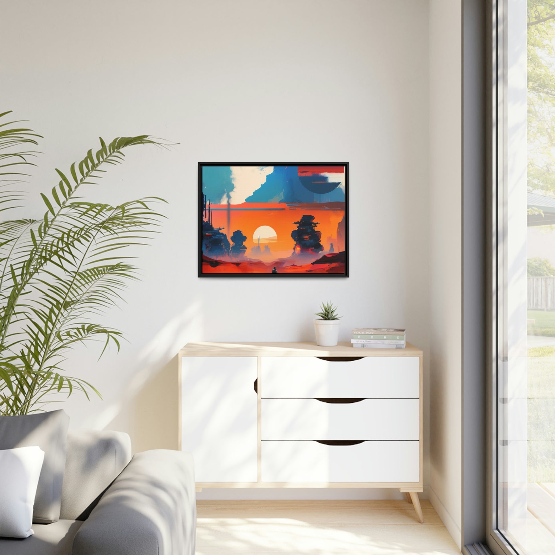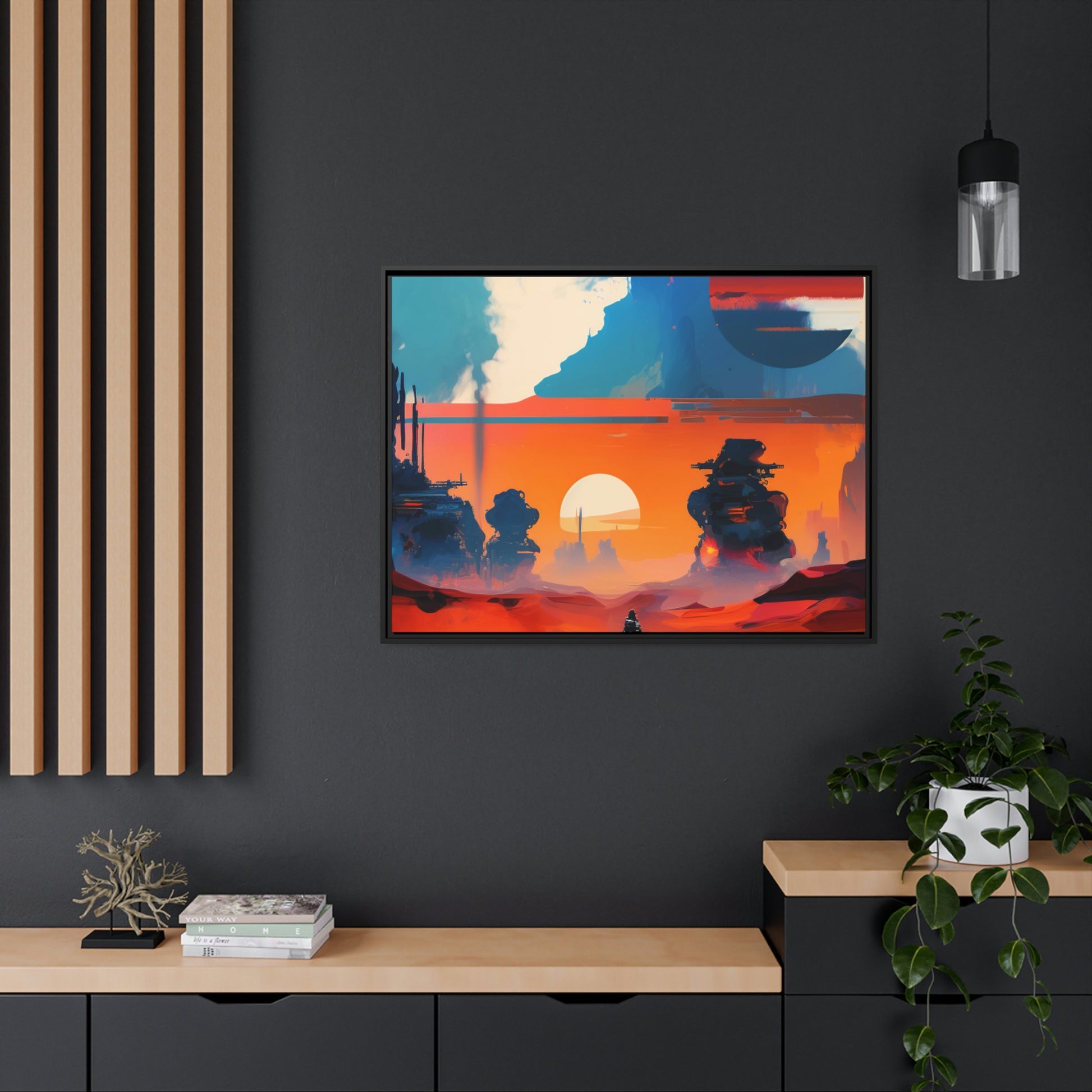 Experience the fusion of Tatooine sunset and the Star Wars universe with our stunning artwork featuring an abstract landscape inspired by the style of Mark Rothko. This unique painting showcases a mix of organic shapes and bold colors, with the added touch of Star Wars characters, creating a visually striking and captivating piece. The abstract style and vibrant color adds warmth and character to your home decor, making it perfect as a statement piece. Whether you're a fan of Star Wars or contemporary art, This sublime landscape is the perfect addition to your living space.