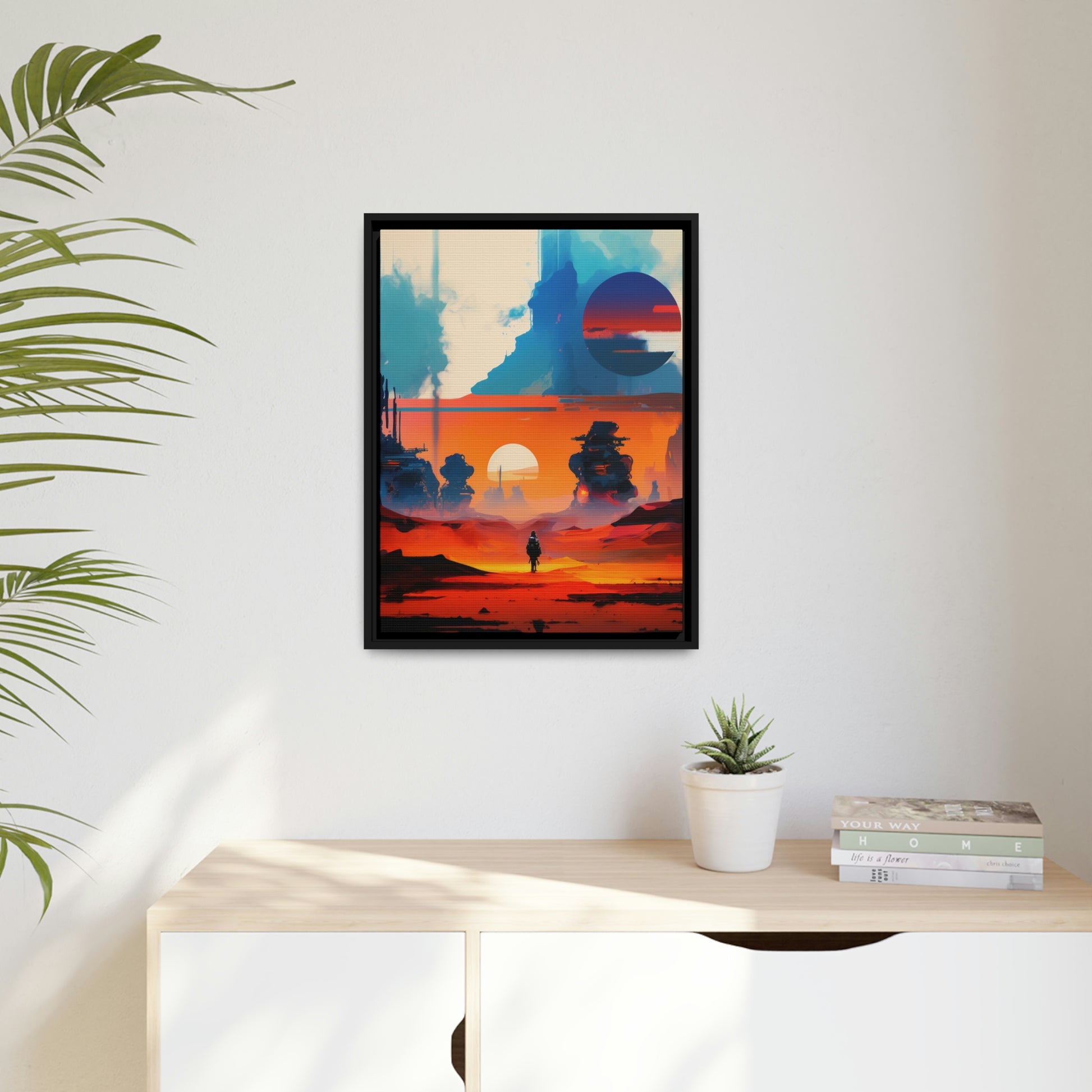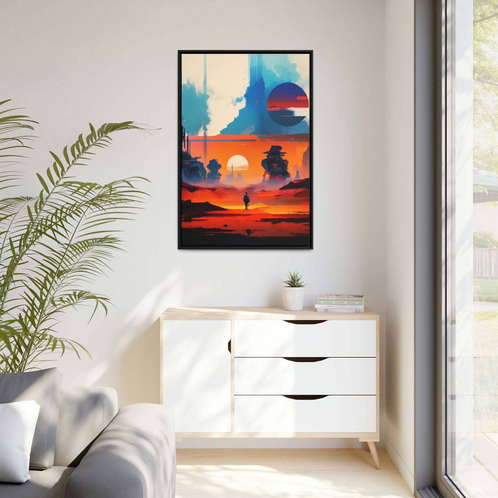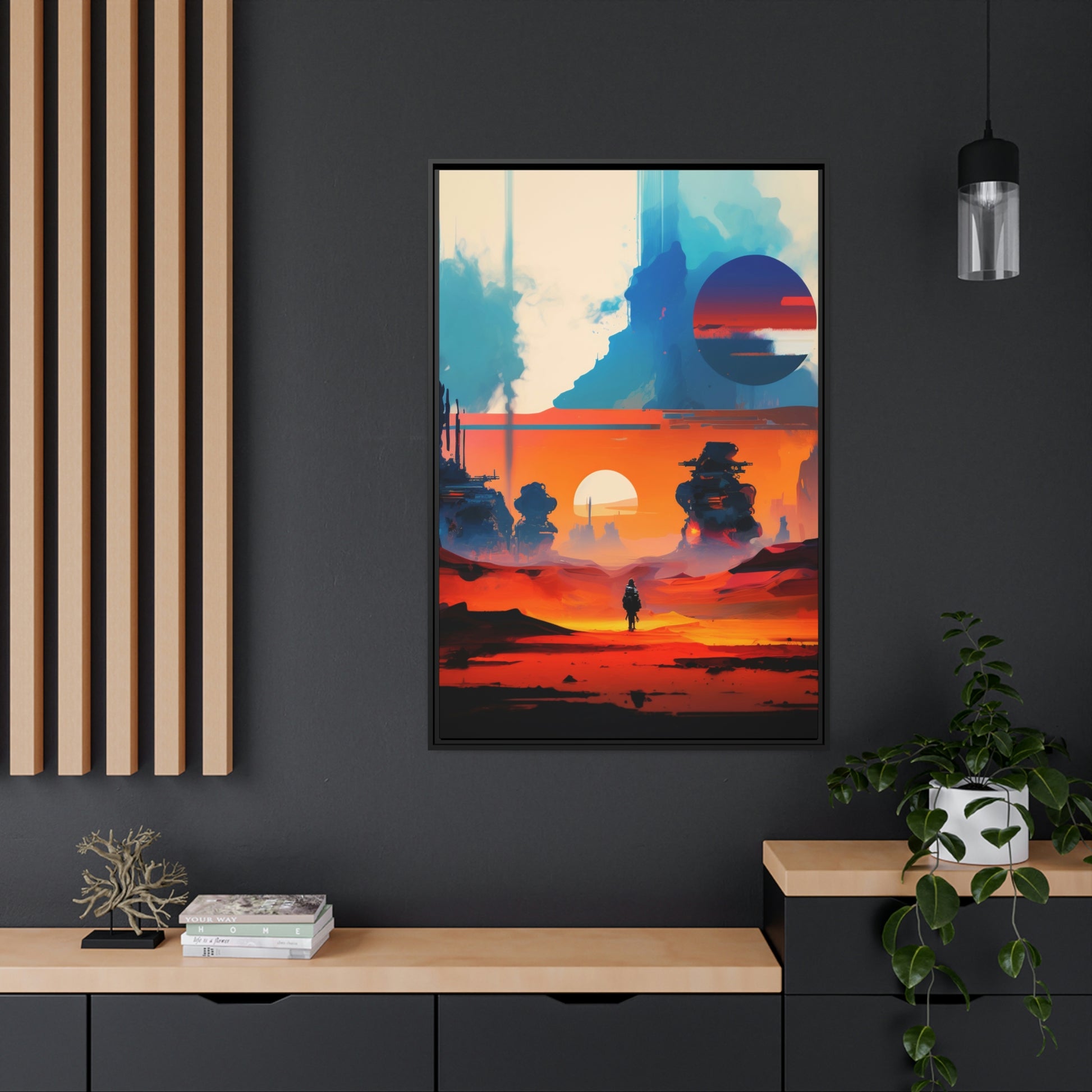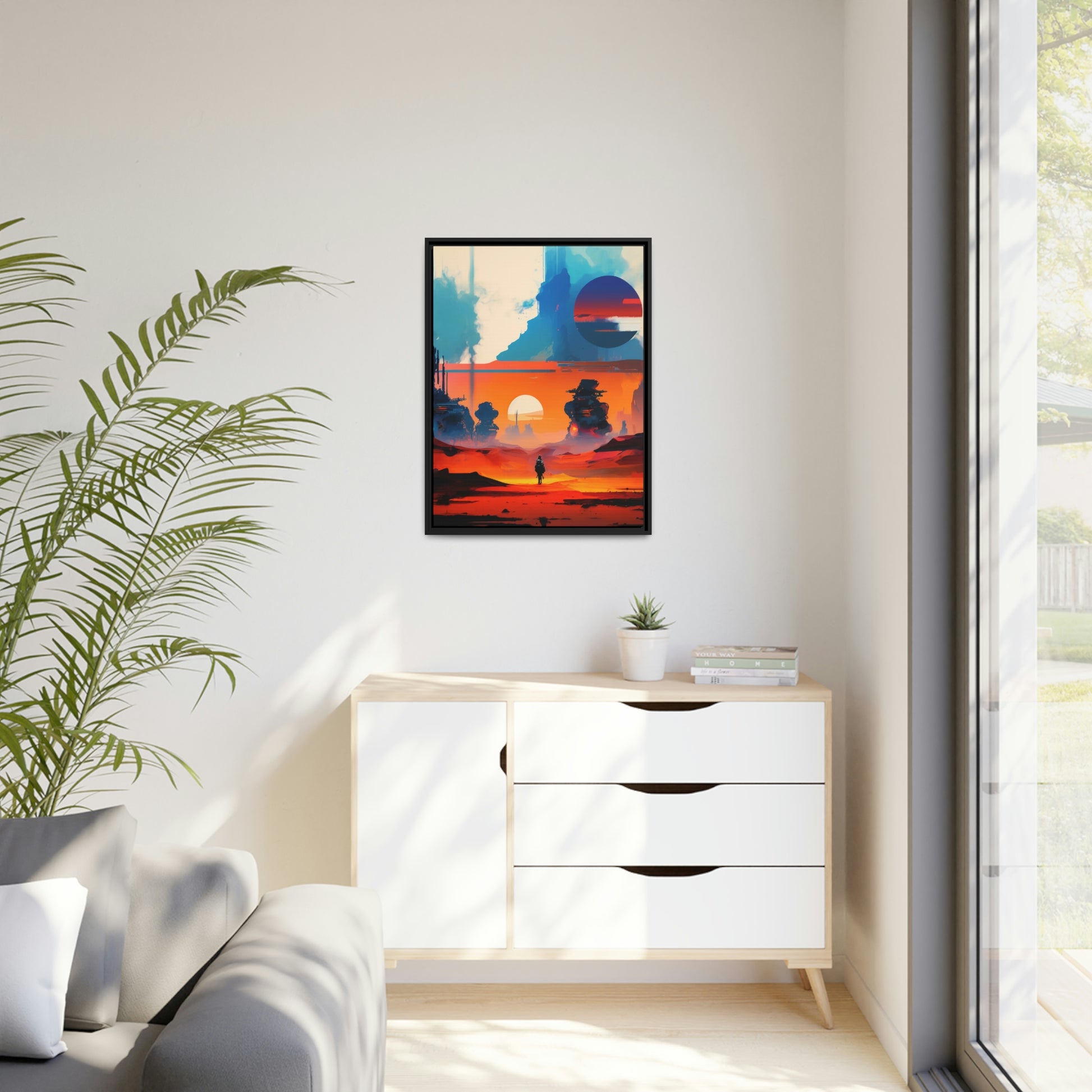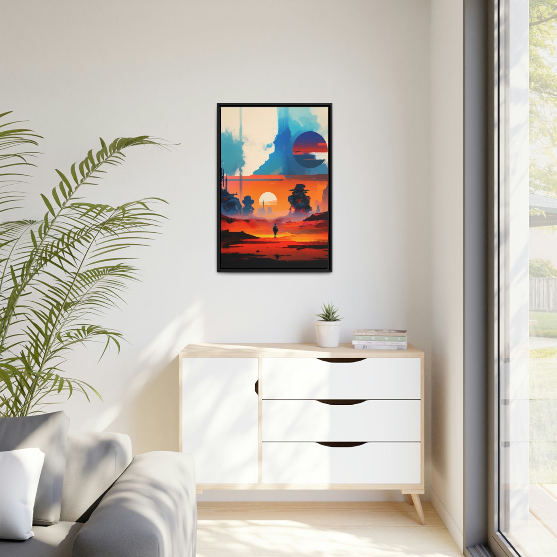 Experience the fusion of Tatooine sunset and the Star Wars universe with our stunning artwork featuring an abstract landscape inspired by the style of Mark Rothko. This unique painting showcases a mix of organic shapes and bold colors, with the added touch of Star Wars characters, creating a visually striking and captivating piece. The abstract style and vibrant color adds warmth and character to your home decor, making it perfect as a statement piece. Whether you're a fan of Star Wars or contemporary art, This sublime landscape is the perfect addition to your living space.