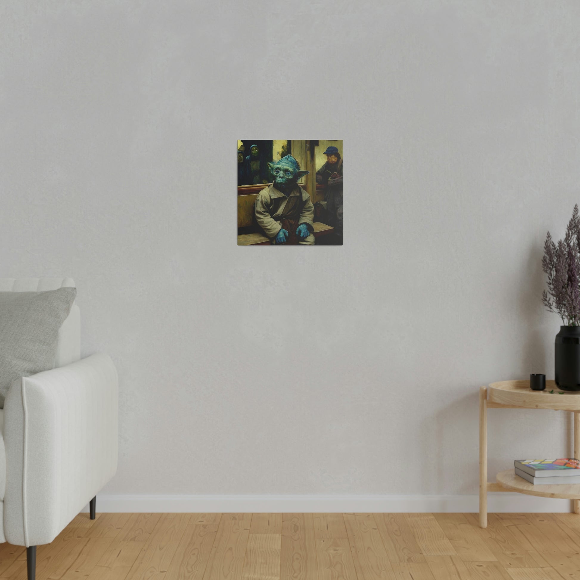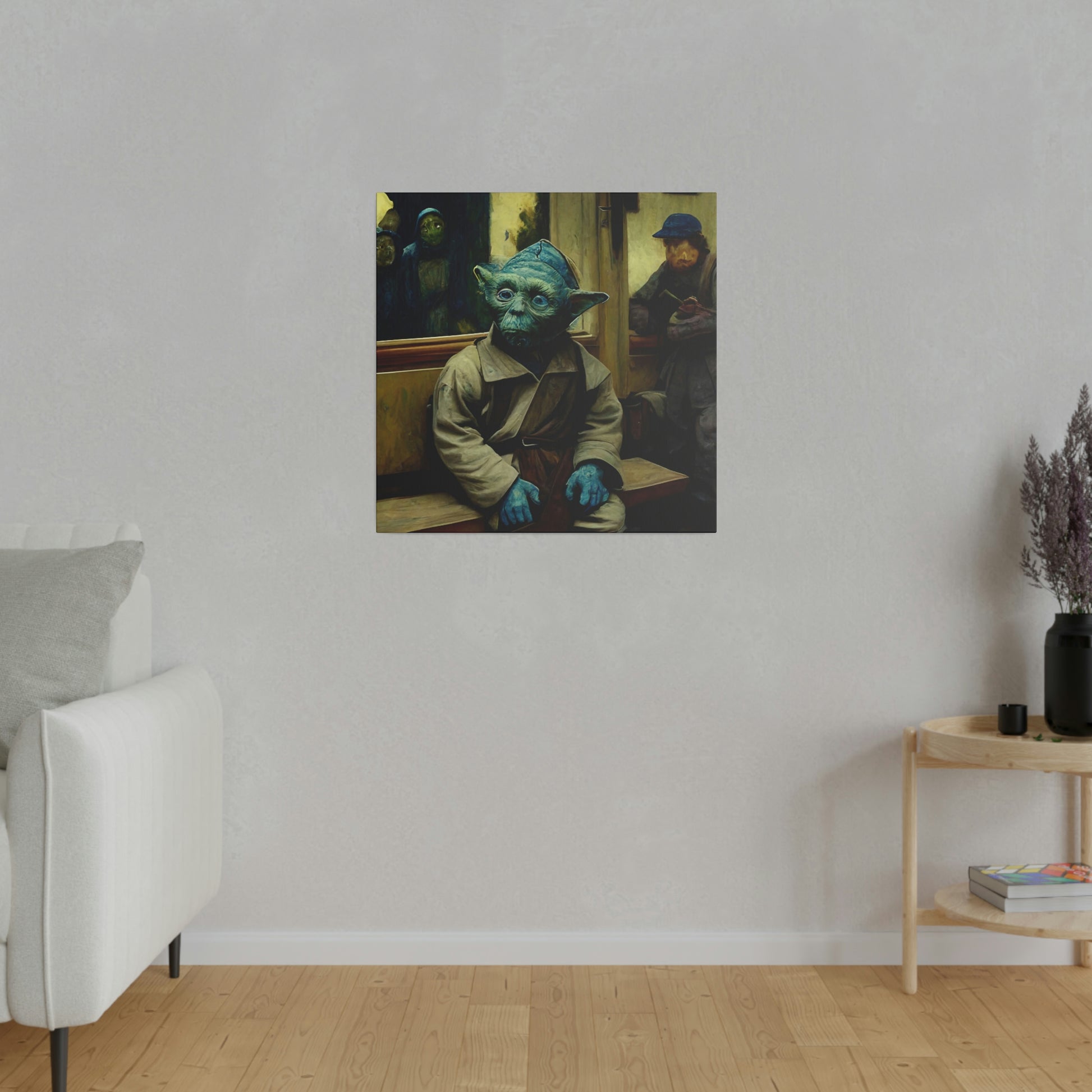 Immerse yourself in the serenity of the Star Wars universe with this captivating painting that features Yoda sitting on a bench, contemplating a Renaissance painting. The intricate attention to detail and striking use of light and shadow creates a sense of peace and tranquility, drawing you into the scene and making you feel as if you are part of the moment.